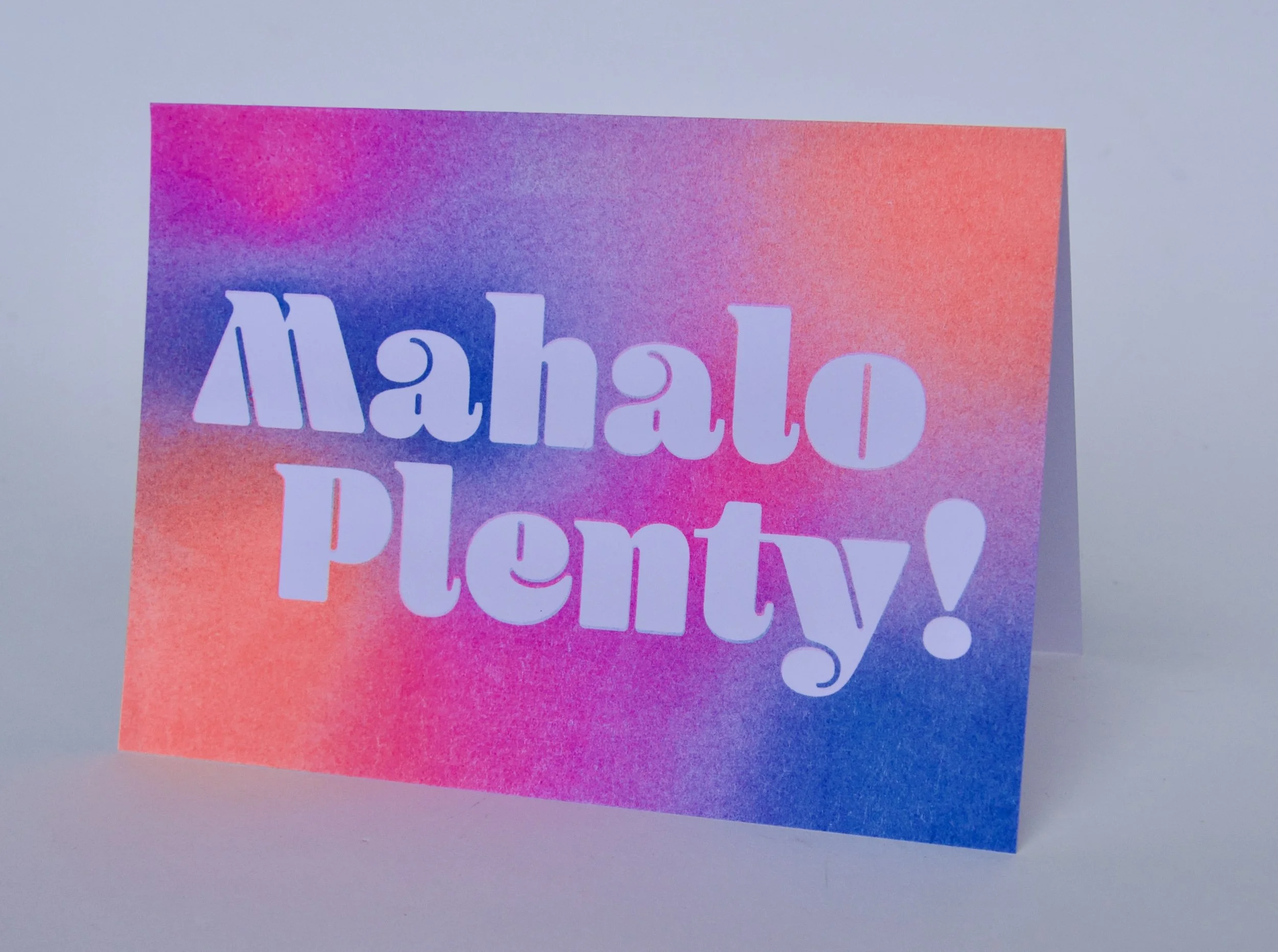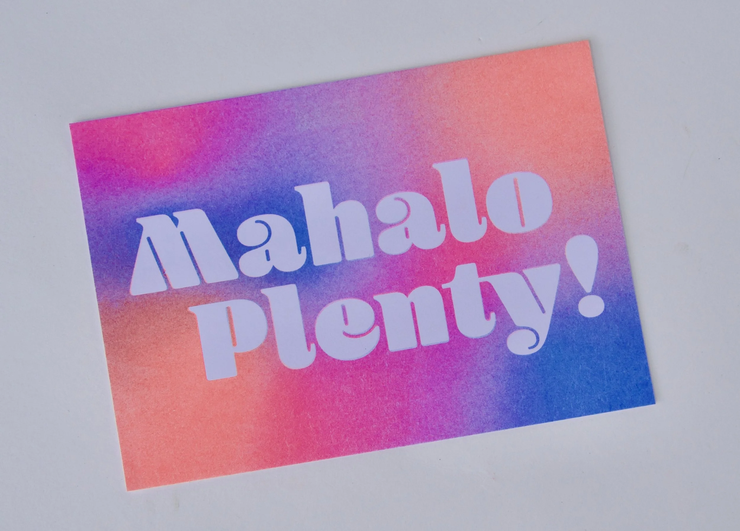 Risograph printing is a unique process in-between xerox printing, and screen printing. This unique process creates a fair amount of variation between each print, making each card one one-of-kind.